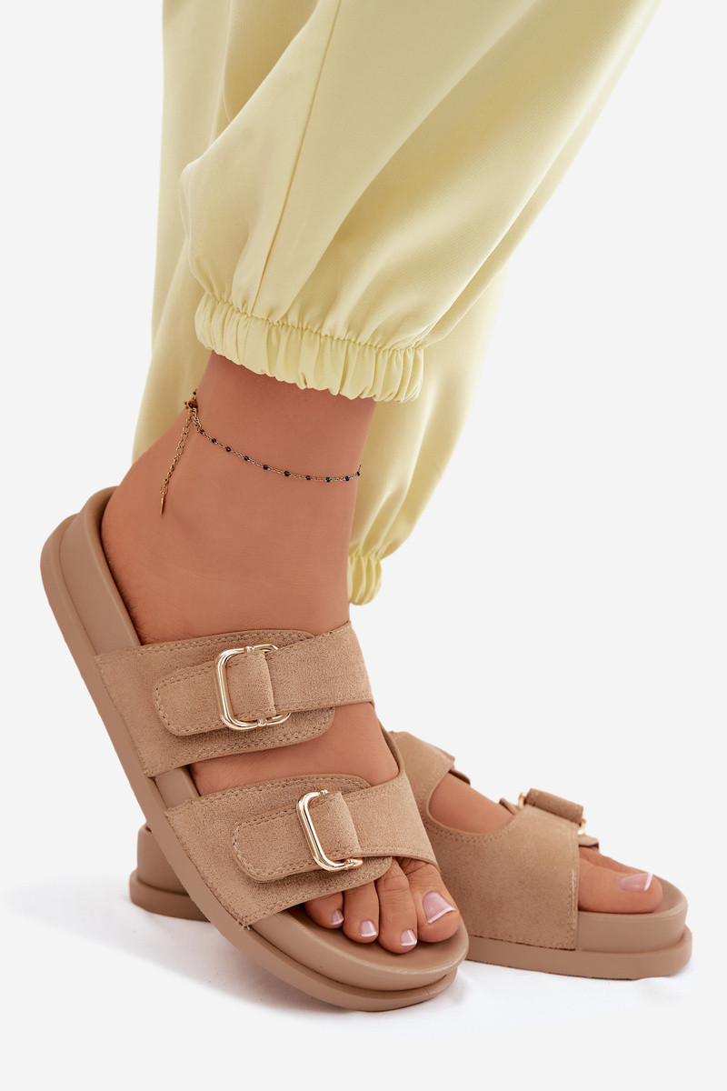 Pantoufles pour femmes Ze couleur doréemi avec bouclesmi beige Pelorin