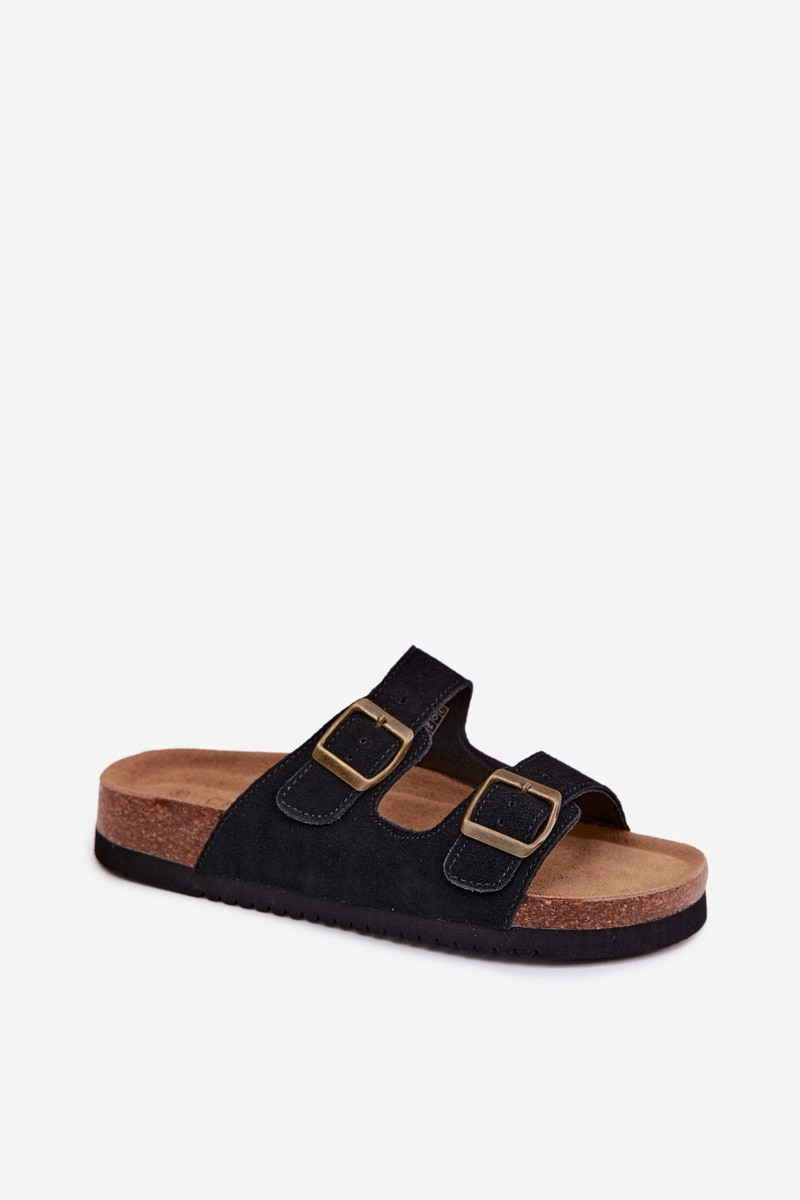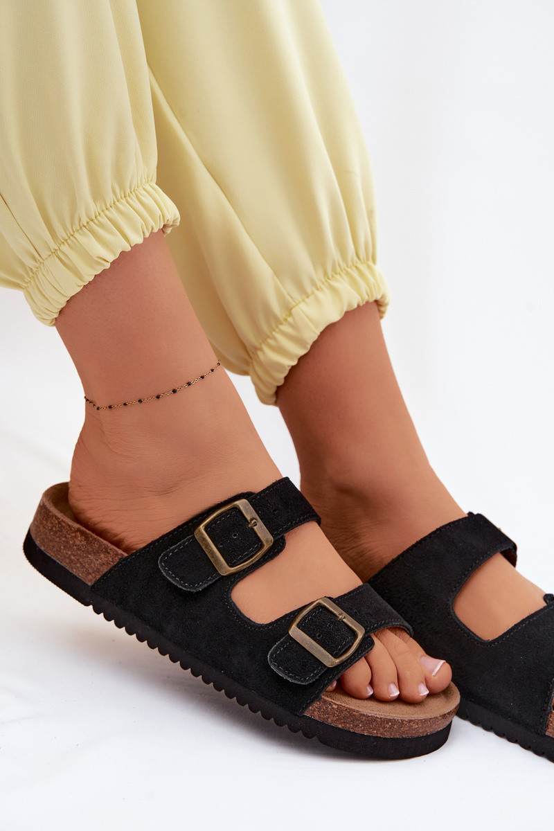Peau Chaussons femme en daim avec boucles couleur noire Rosaliae