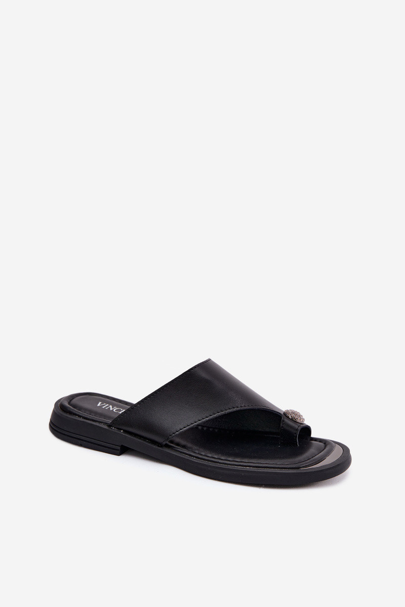 Pantoufles en cuir Chaussons Féminin avec des talons larges Vinceza 62307 couleur noire