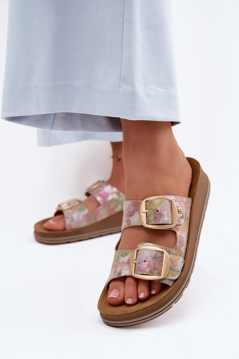 Chaussons en cuir à motifs avec boucles de différentes couleurs