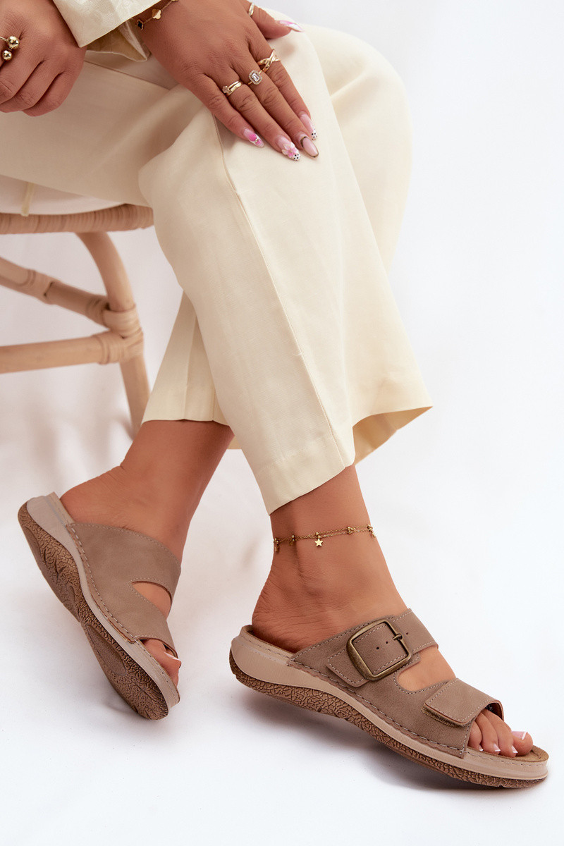 Pantoufles pour femmes avec boucles I avec fermoir adhésifem INBLU LL000006 marron