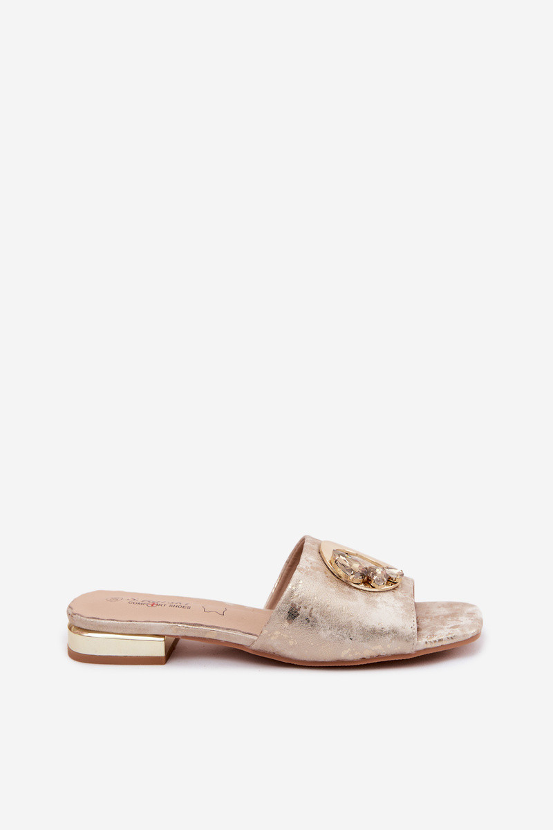 Chaussons pour femmes avec talons larges et ornements KV61-6025 couleur or