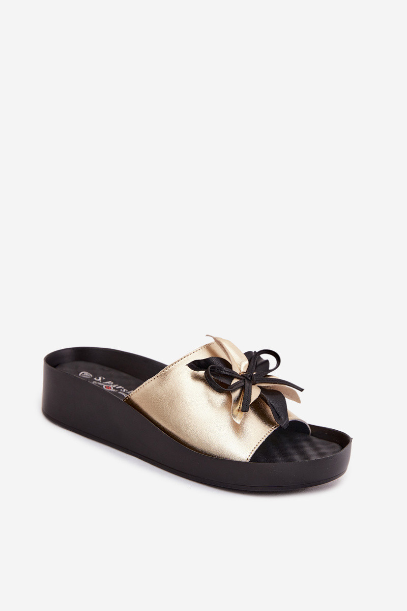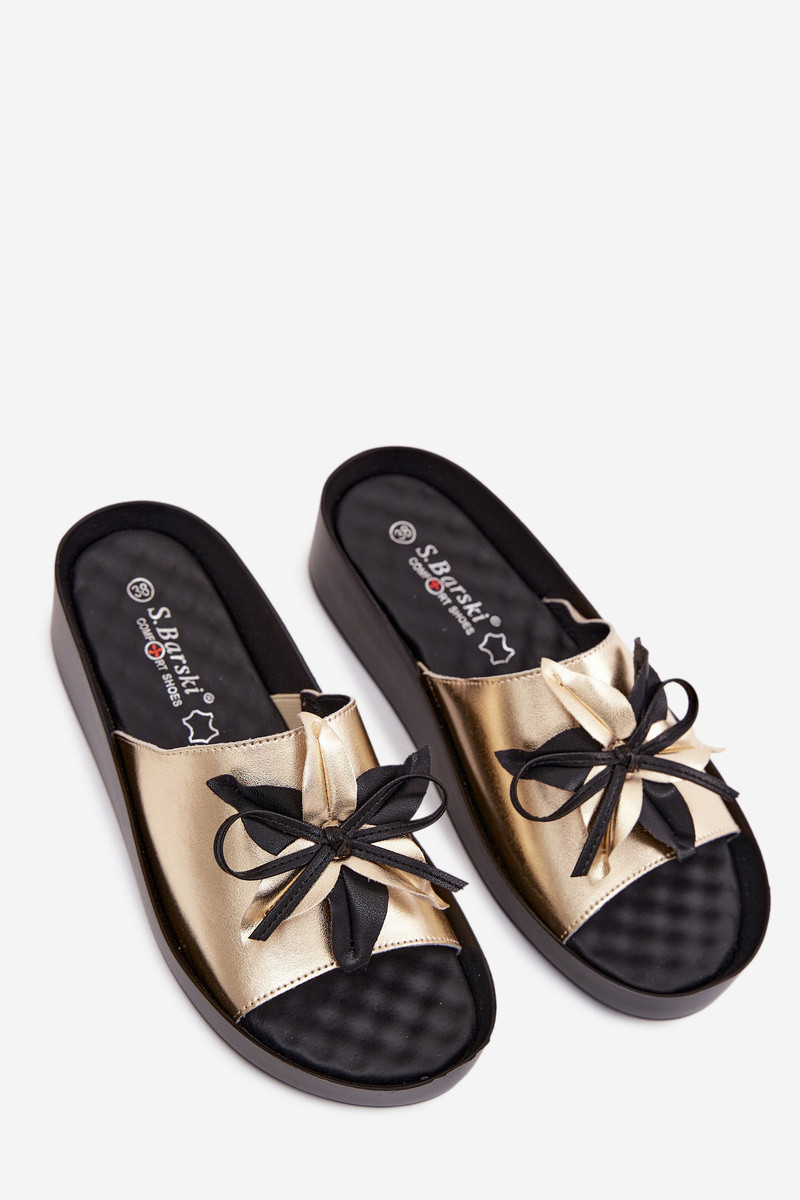 Pantoufles en cuir Féminin avec des ornements S.Barski KV61-6044 couleur dorée