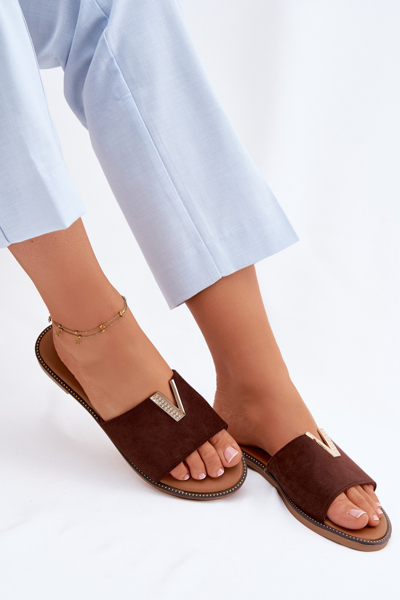 Chaussons Appartement pour femmes Avec des décorations Detalem V CzekoladoÀe Nelmira