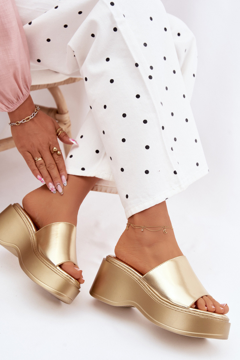 Pantoufles pour femmes avec une plateforme couleur dorée Virelia