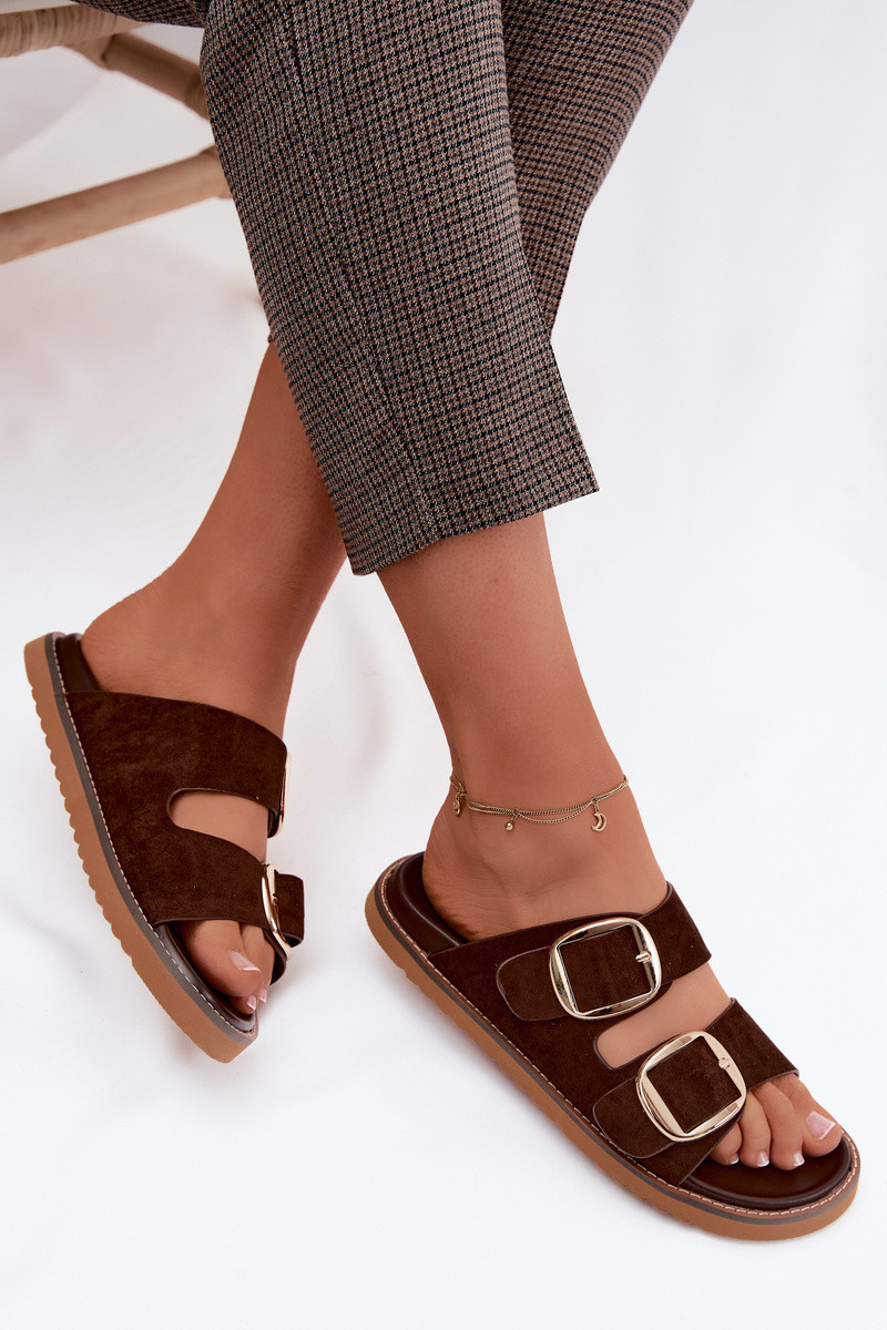 Chaussons pour femmes en daim synthétique avec boucles dorées Czekolado Averia