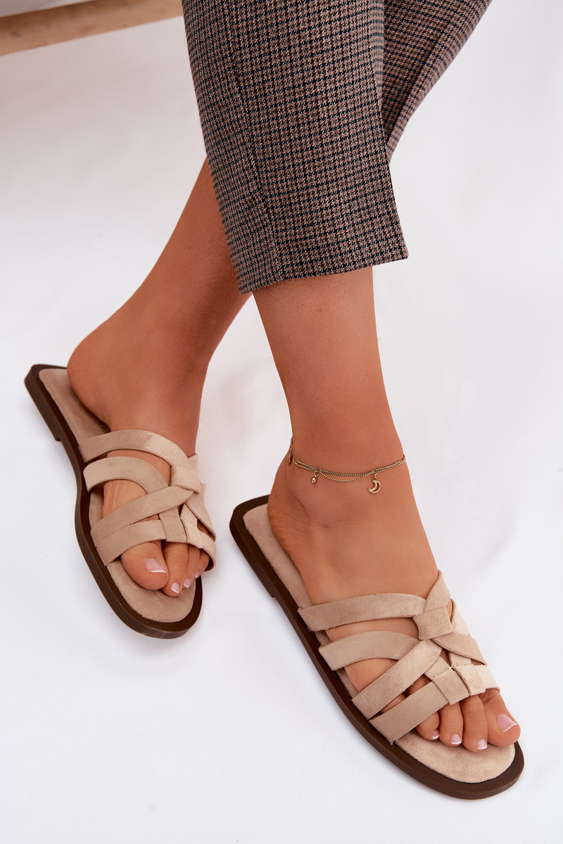 Chaussons pour femmes avec brides en daim synthétique couleur marron Calvia