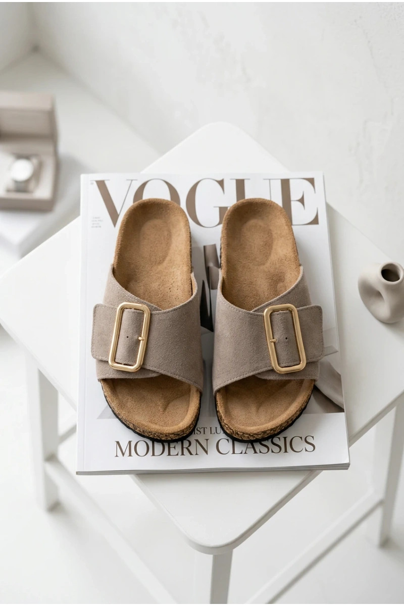 Peau Chaussons femme en daim avec boucles beige Beryl