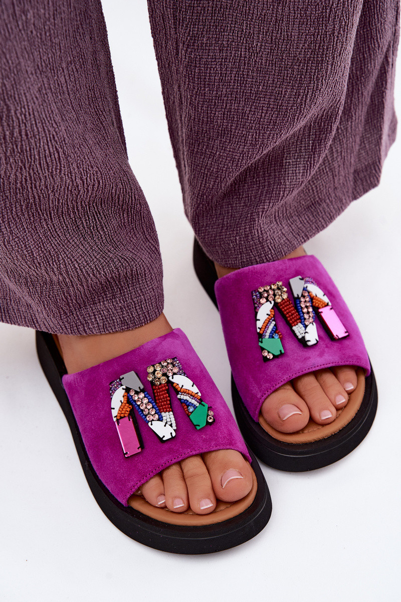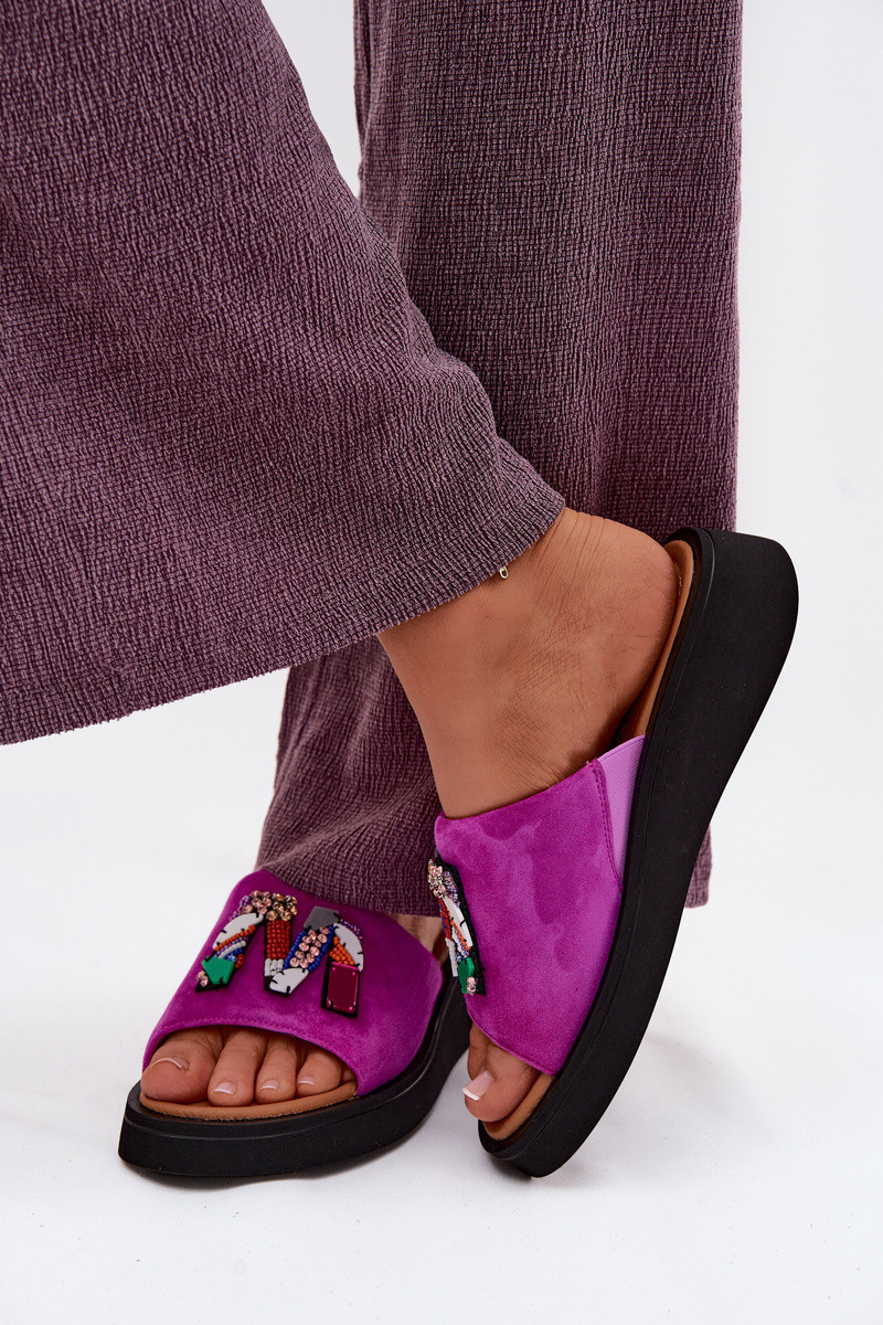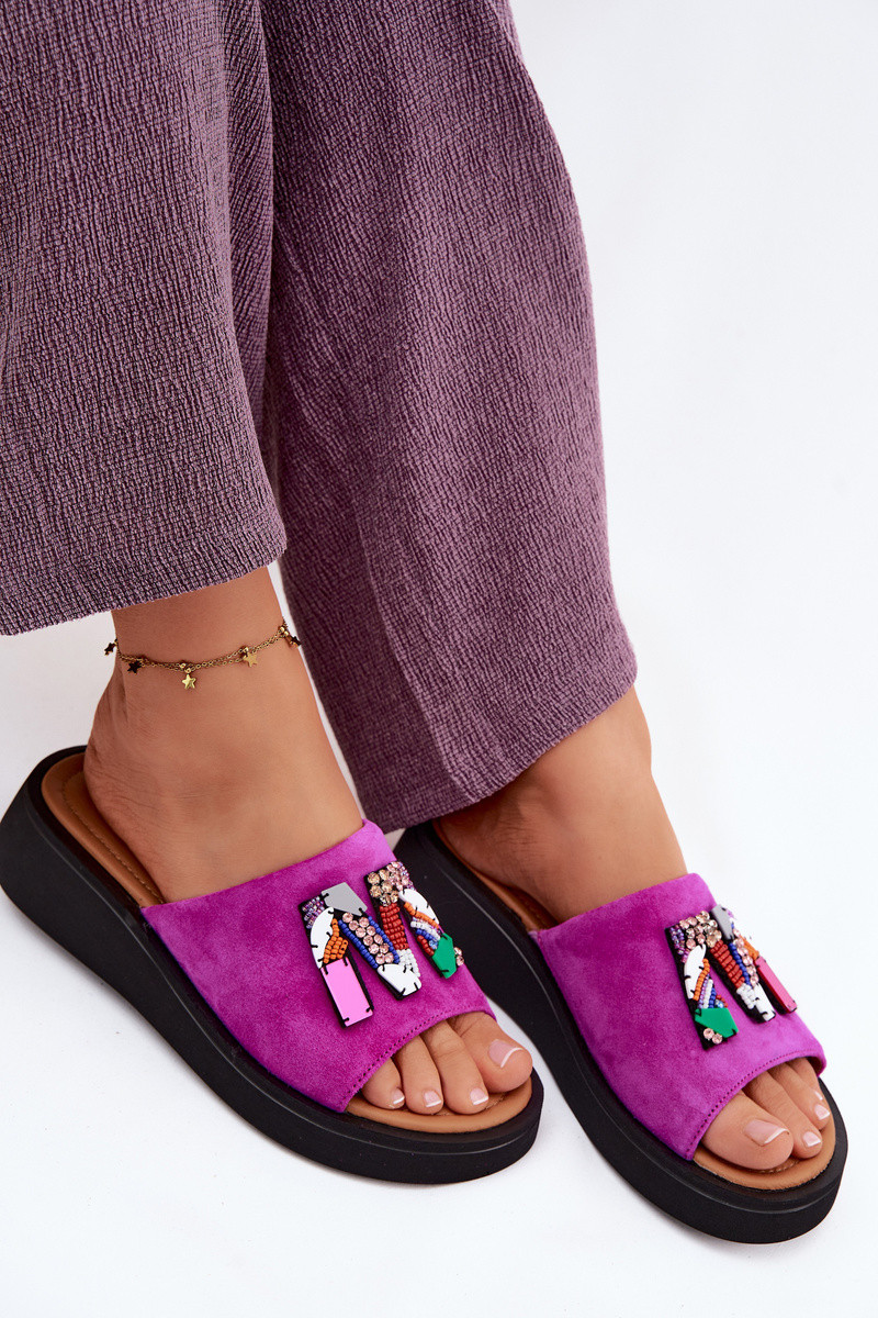 Peau Chaussons femme en daim avec des ornements avec une plateforme Vinceza 66942 couleur rose