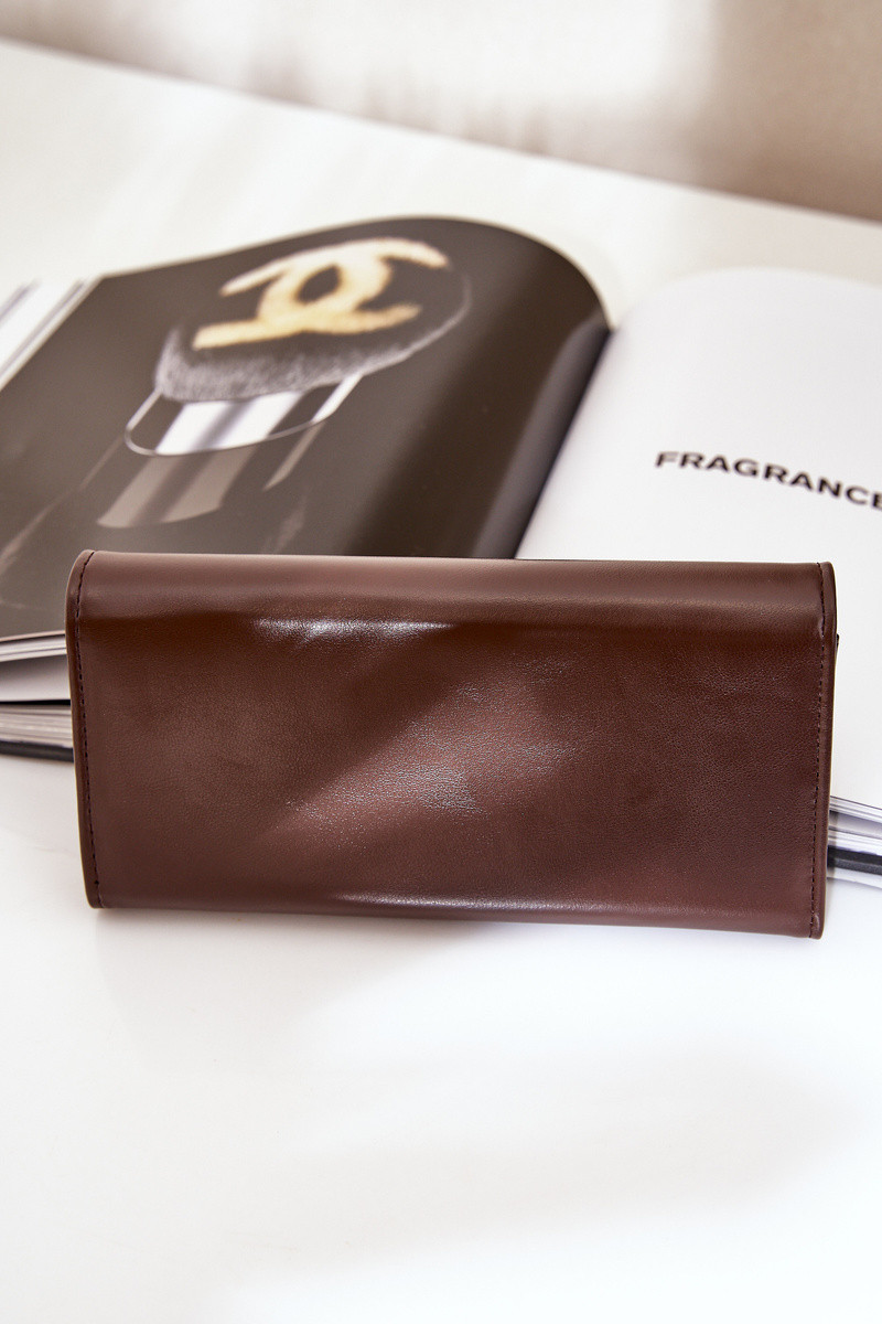 Portefeuille féminin lisse en simili cuir chocolat Erolia