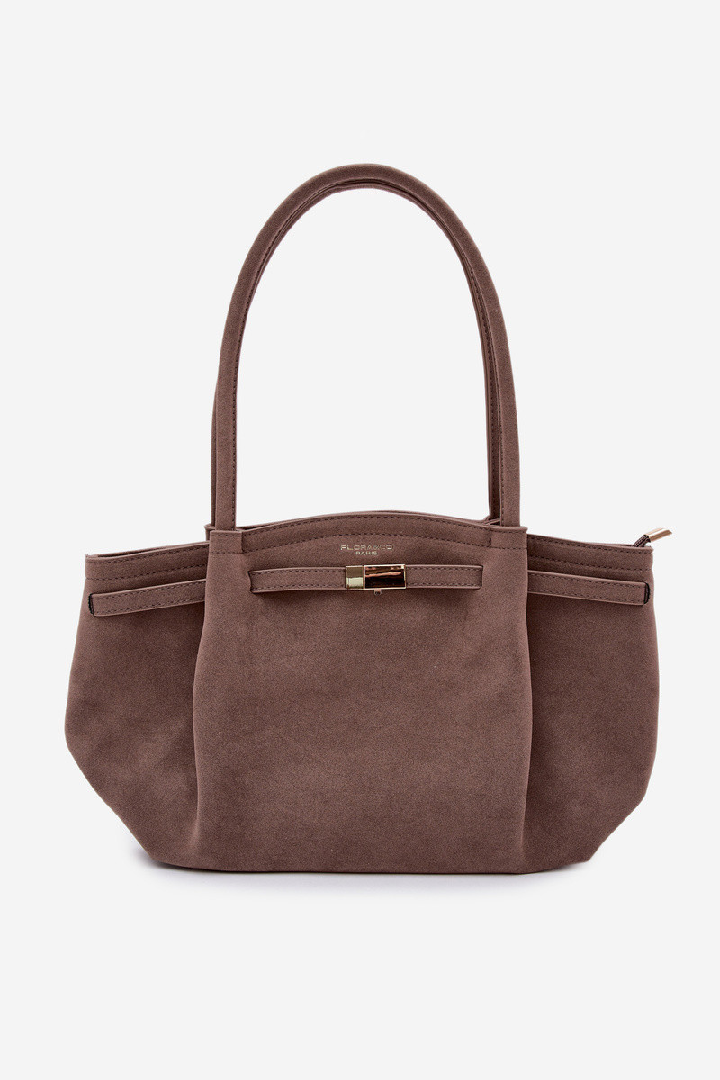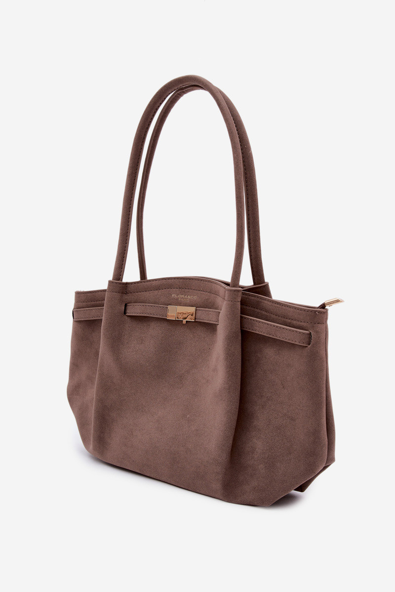 Sac shopper en suédine couleur sable foncé Elleea