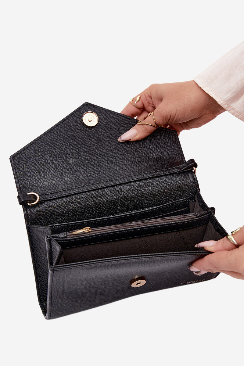 Sac enveloppe portefeuille deux en un avec bandes décoratives couleur noire Pauline
