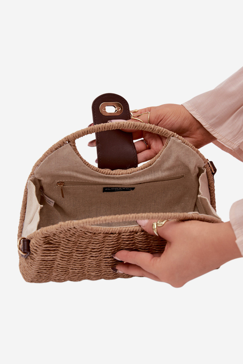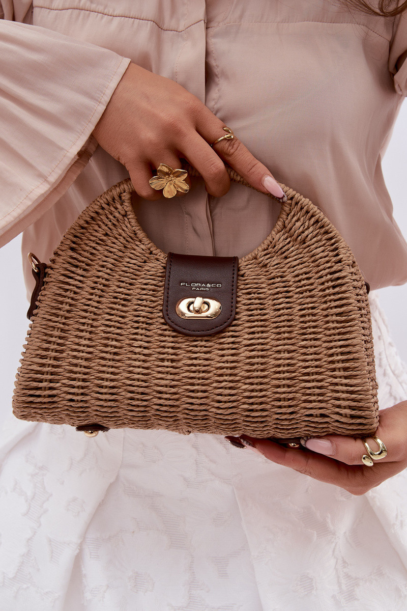 Tressé Un petit sac à main avec bandes décoratives brun-couleur dorée Delphine