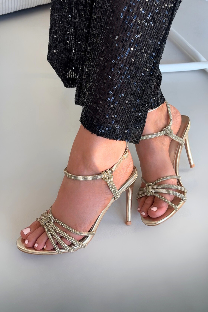 Sandales pour femmes avec des talons fins avec des bandes Et des zircons couleur dorée Tanelle