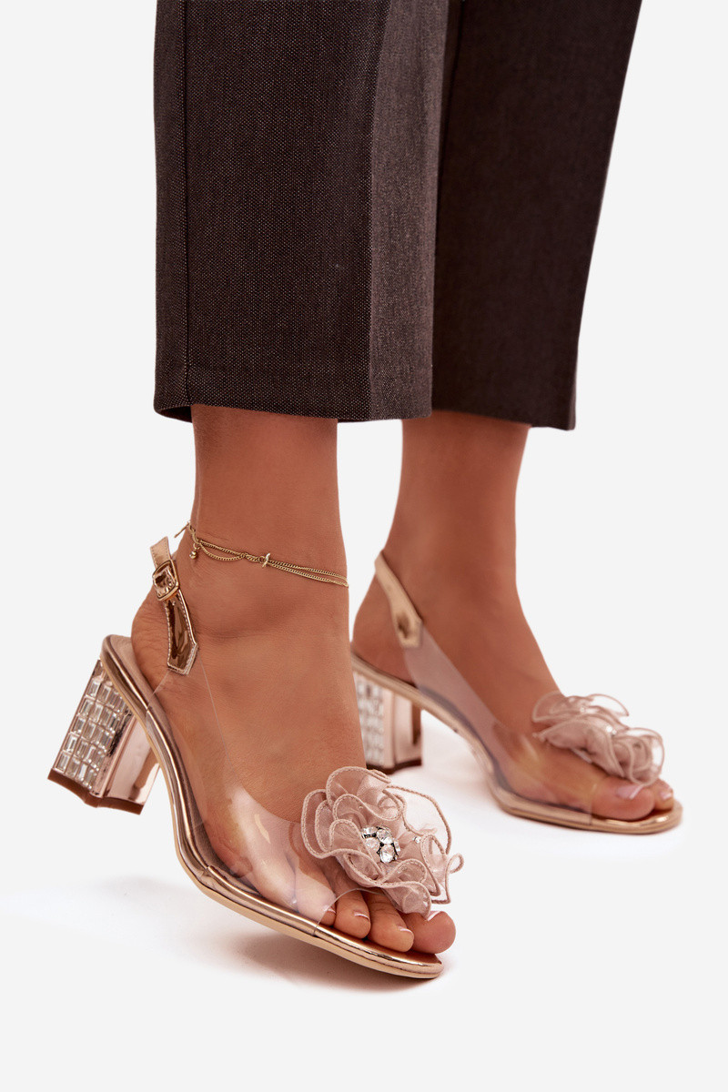 des sandales avec des talons avec des ornements D&A MR52-238 couleur or rose