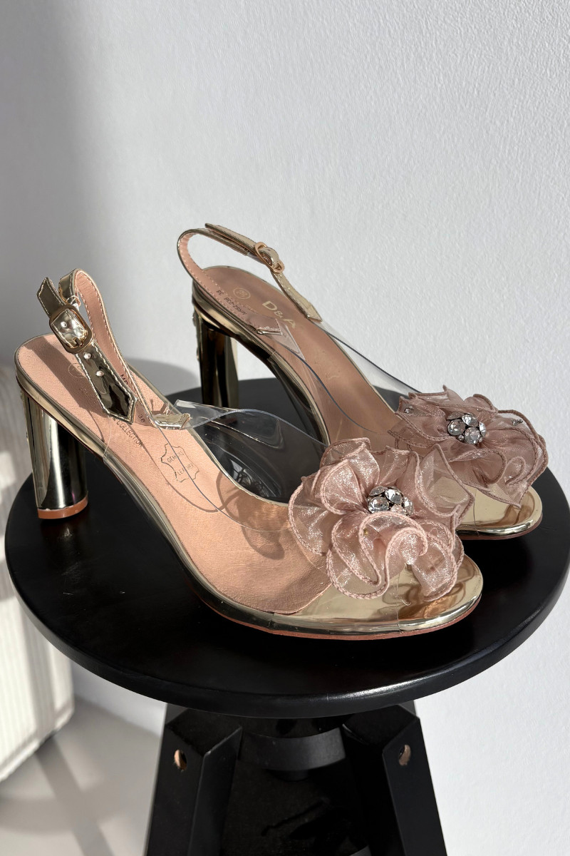 Sandales à talons avec ornements D&A MR52-236, couleur dorée
