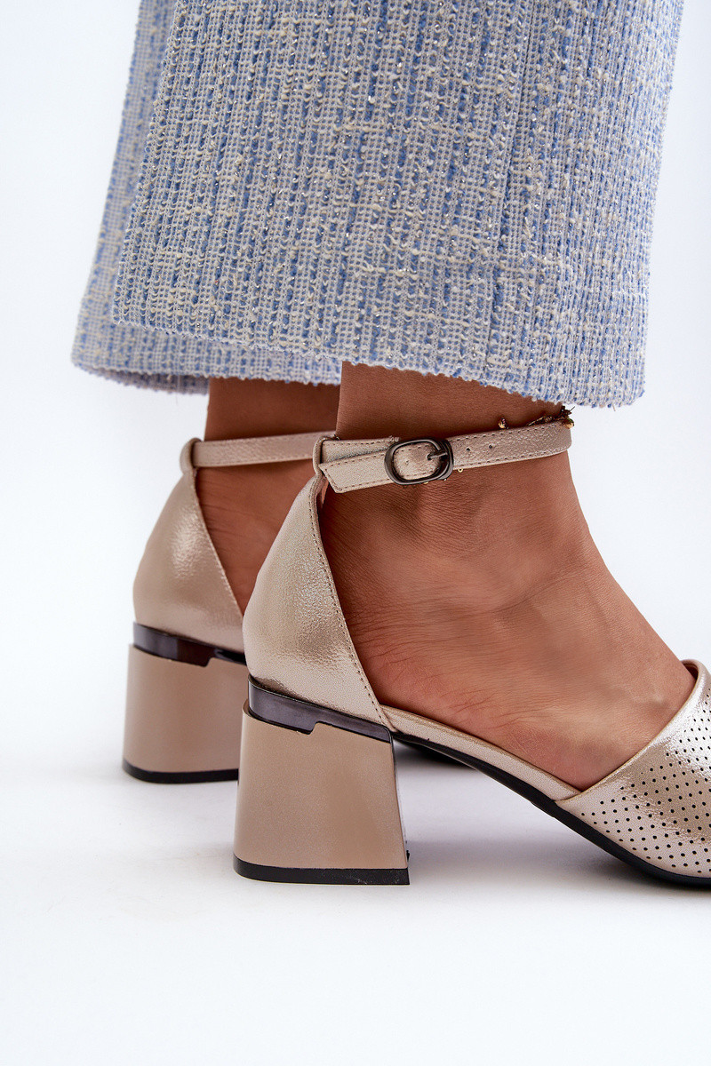 Sandales pour femmes avec des talons en cuir écologique couleur dorée Horissa