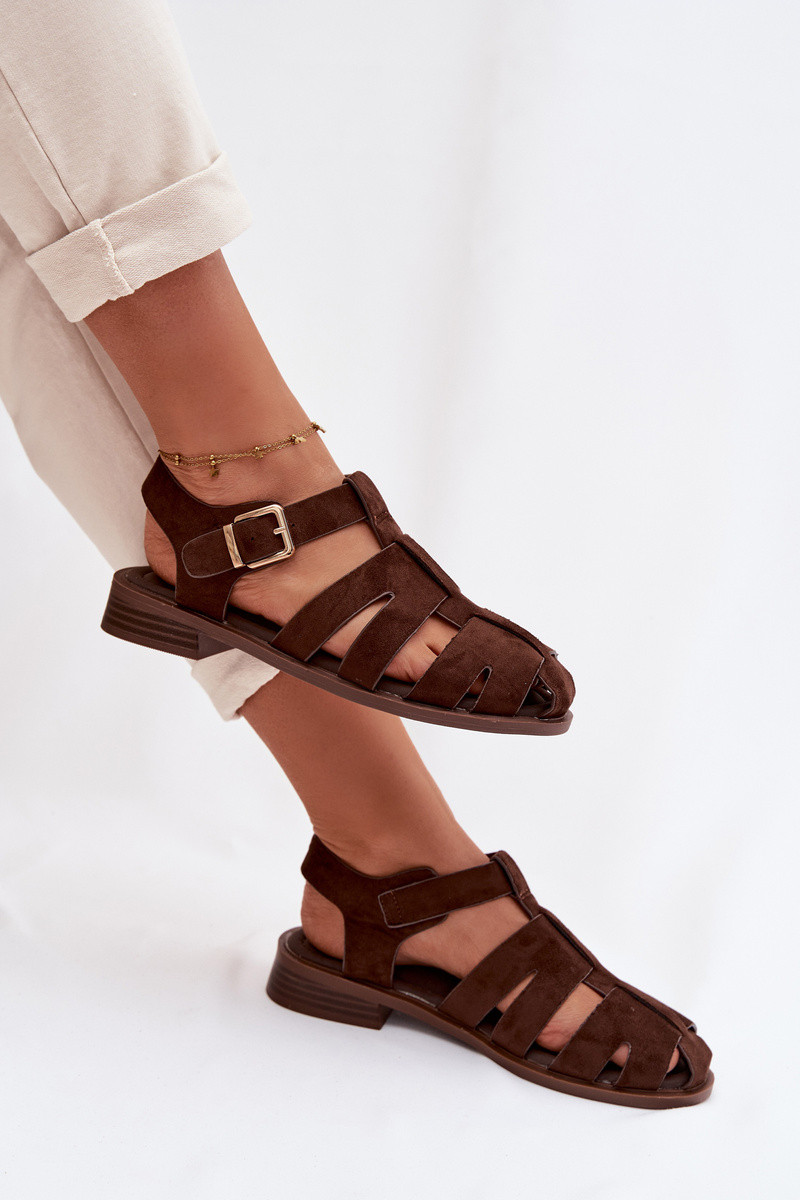 Sandales pour femmes avec des boucles dorées, couleur chocolat, Janessa
