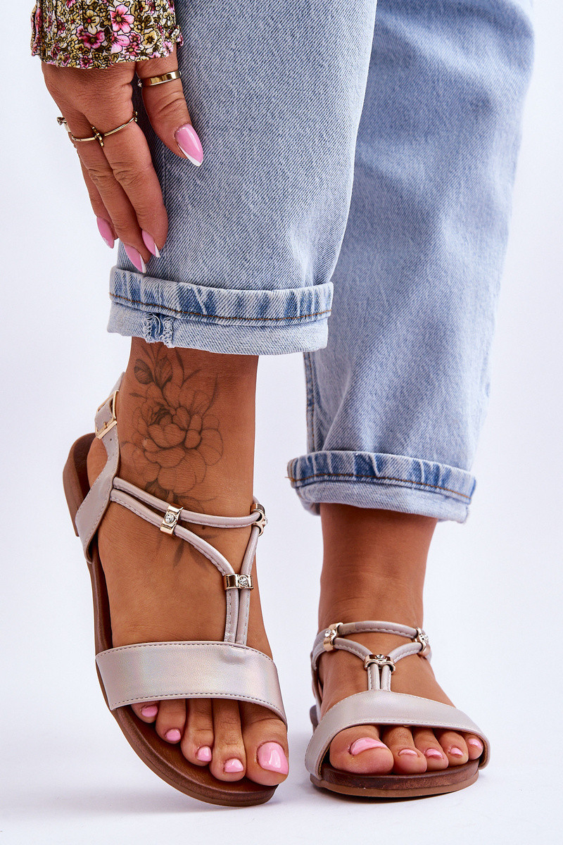 Sandales plates pour femmes S.Barski KV-541-120 couleur dorée