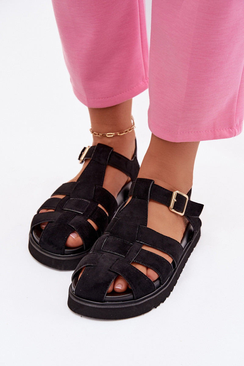 Sandales romaines pour femmes avec des boucles dorées et une plateforme couleur noire Terelina