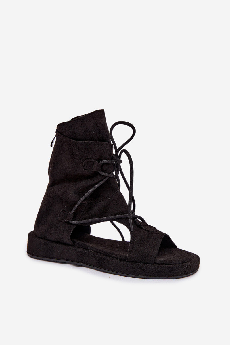 Sandales pour femmes en daim écologiqueoÀe avec une botte I DANSiązaniem couleur noire Ferlisse