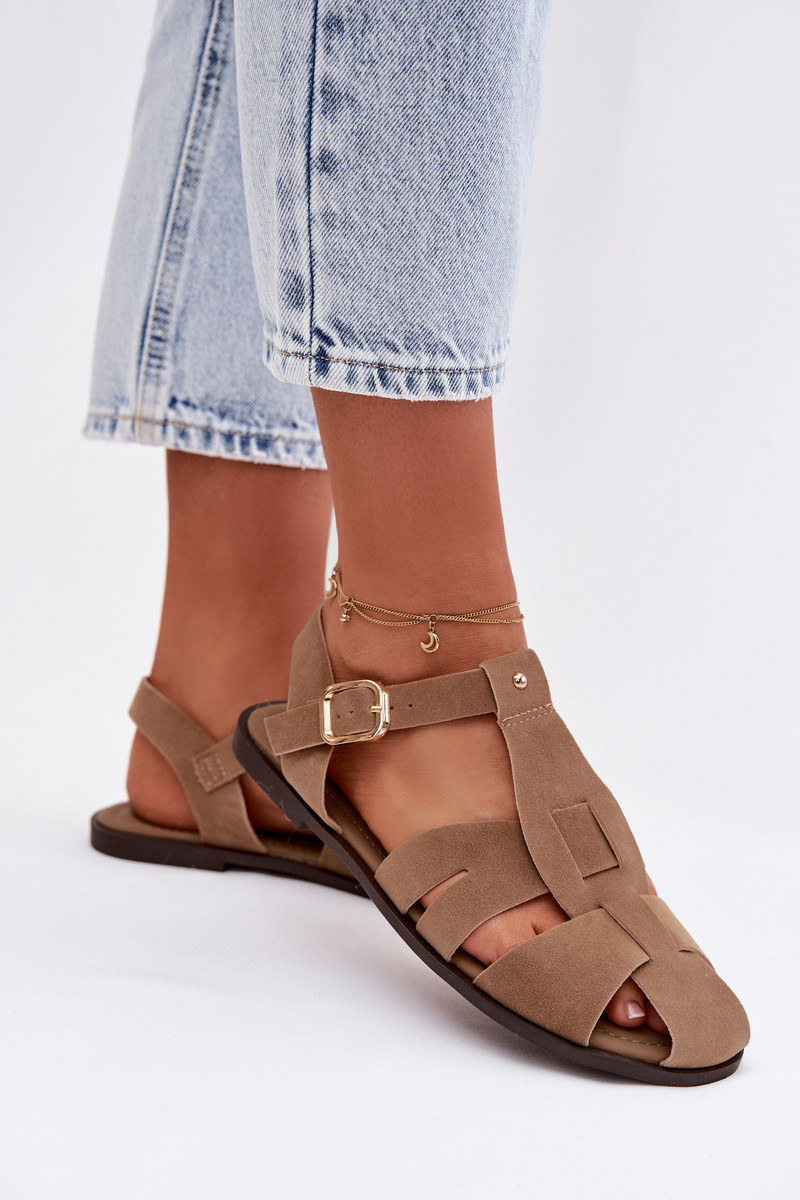 Sandales romaines femme à semelle plate couleur chaki « Belanessa »