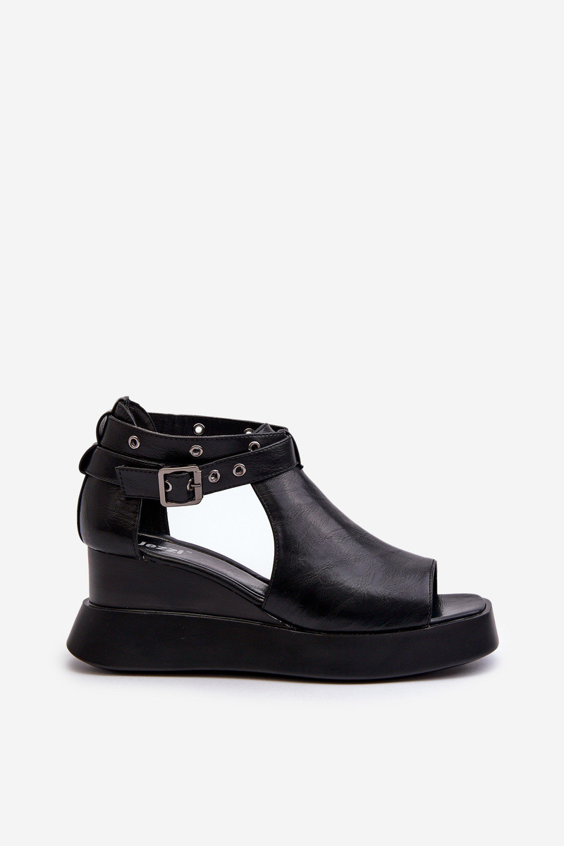 Sandales pour femmes avec une plateforme I Koturnie en cuir écologique couleur noire Hloeli