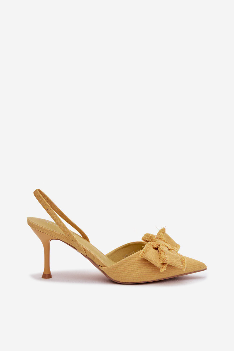 Sandales pour femmes avec talons fins et nœuds, jaunes, Hestia