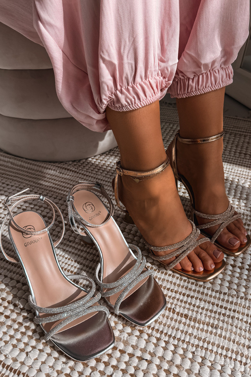 Sandales femmes à talons décorées de lanières couleur champagne Gedira