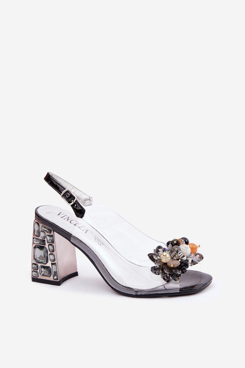des sandales Voir à travers avec des talons aux yeux brillants Vinceza 70121 couleur noire