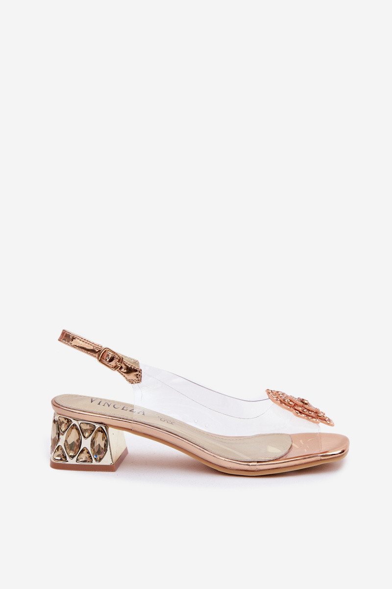Sandales transparentes avec plateformes, pierres brillantes et petites fleurs Vinceza 70122 couleur champagne