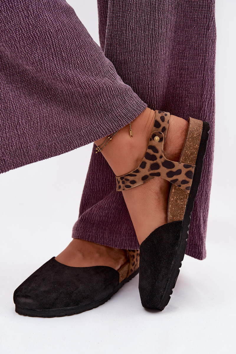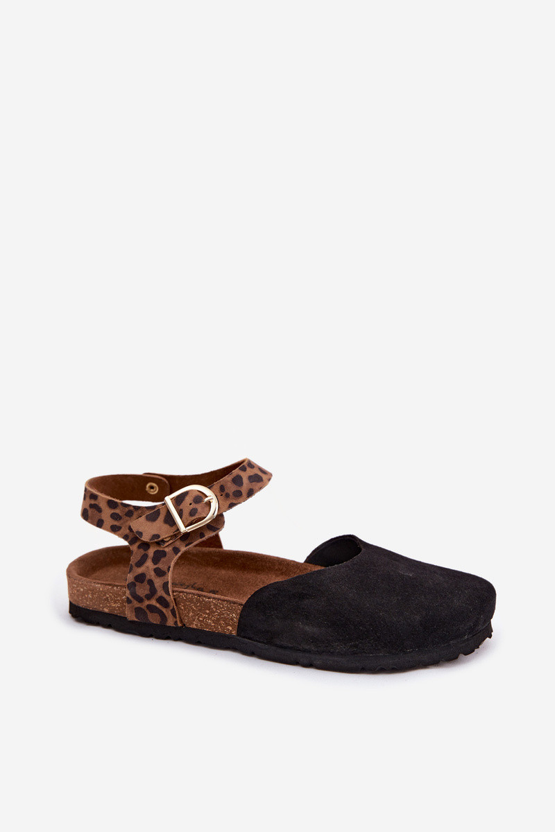 Sandales en cuir suédé pour femmes avec orteils fermés en noir