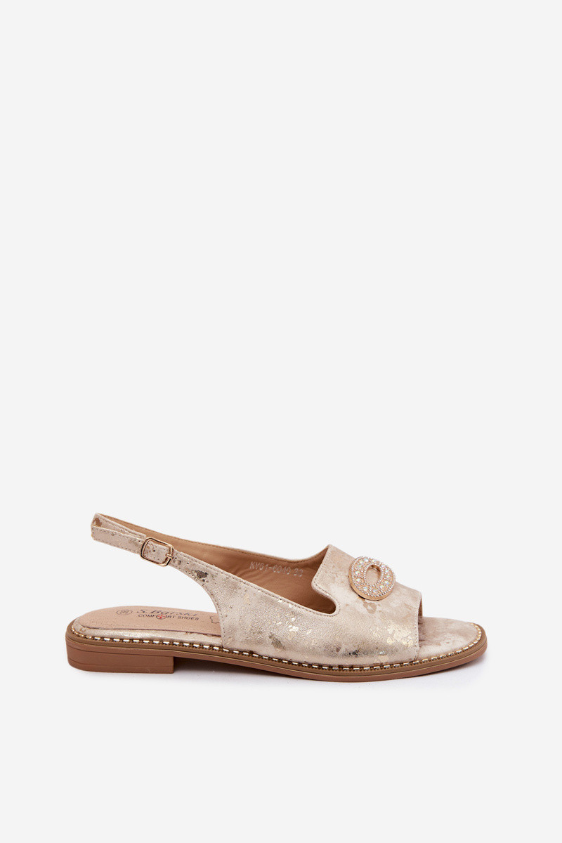 Sandales plates pour femmes avec ornements S.Barski KV61-6040 couleur or