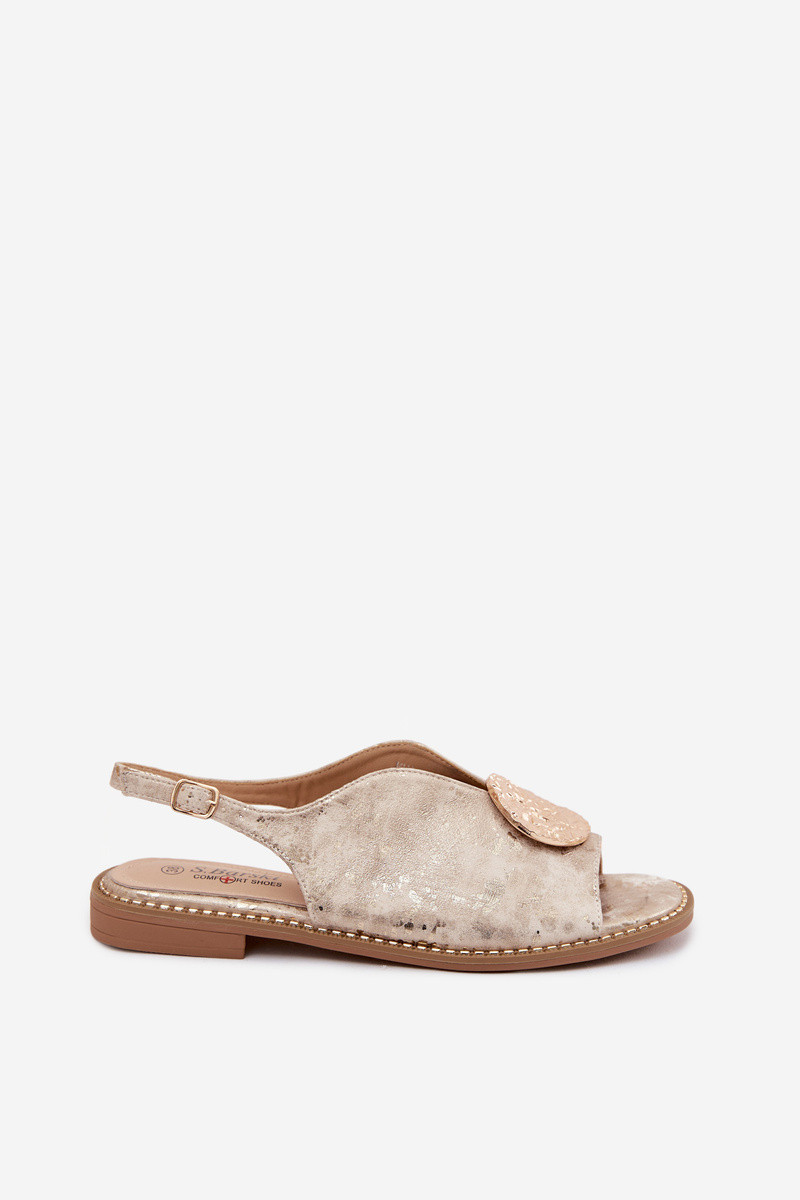 Sandales pour femmes avec talons larges et ornements S.Barski KV61-6035 couleur or