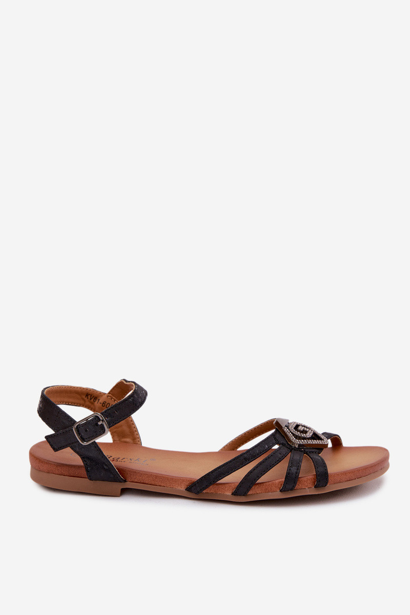 Sandales plates pour femmes avec lanières et décoration S.Barski KV61-6056 couleur noire