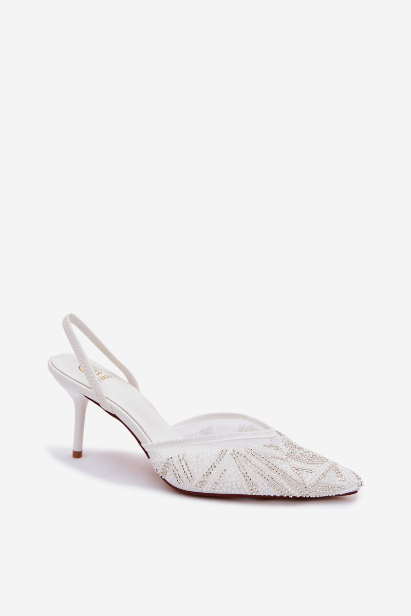 Décoré des sandales avec maille avec des talons fins couleur blanche Bedira