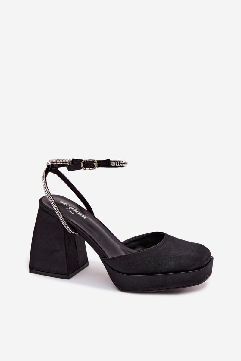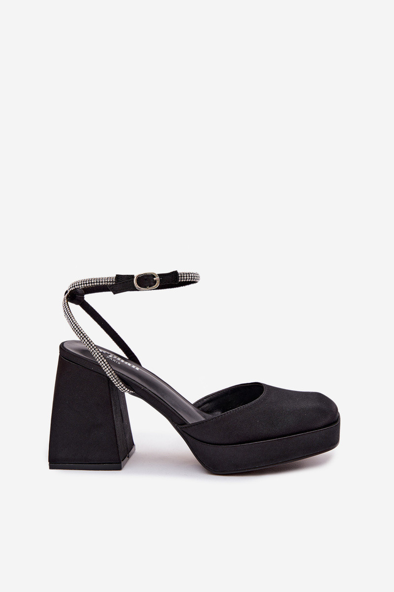 Sandales pour femmes Sur des talons massifs Typu Słupek Pasek avec des yeux qui clignotent couleur noire Seraphina
