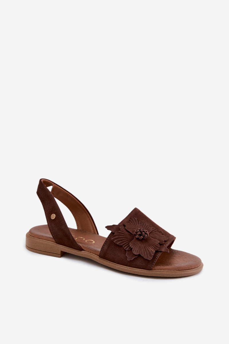 Sandales en daim avec talons larges et fleurs décoratives Zazoo 407471 en brun