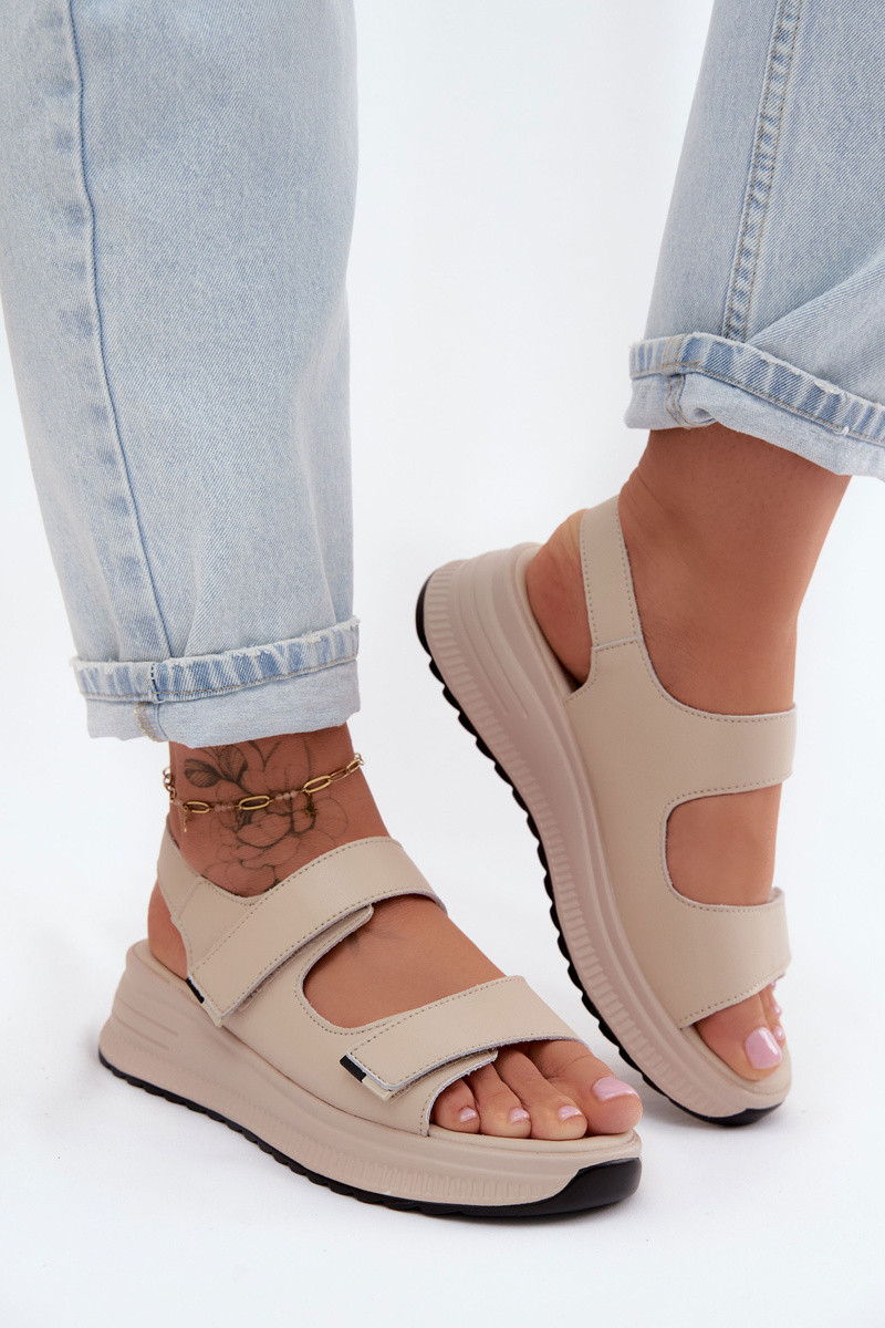 Sandales pour femmes Féminin avec une plateforme avec attaches adhésives beige Jemela