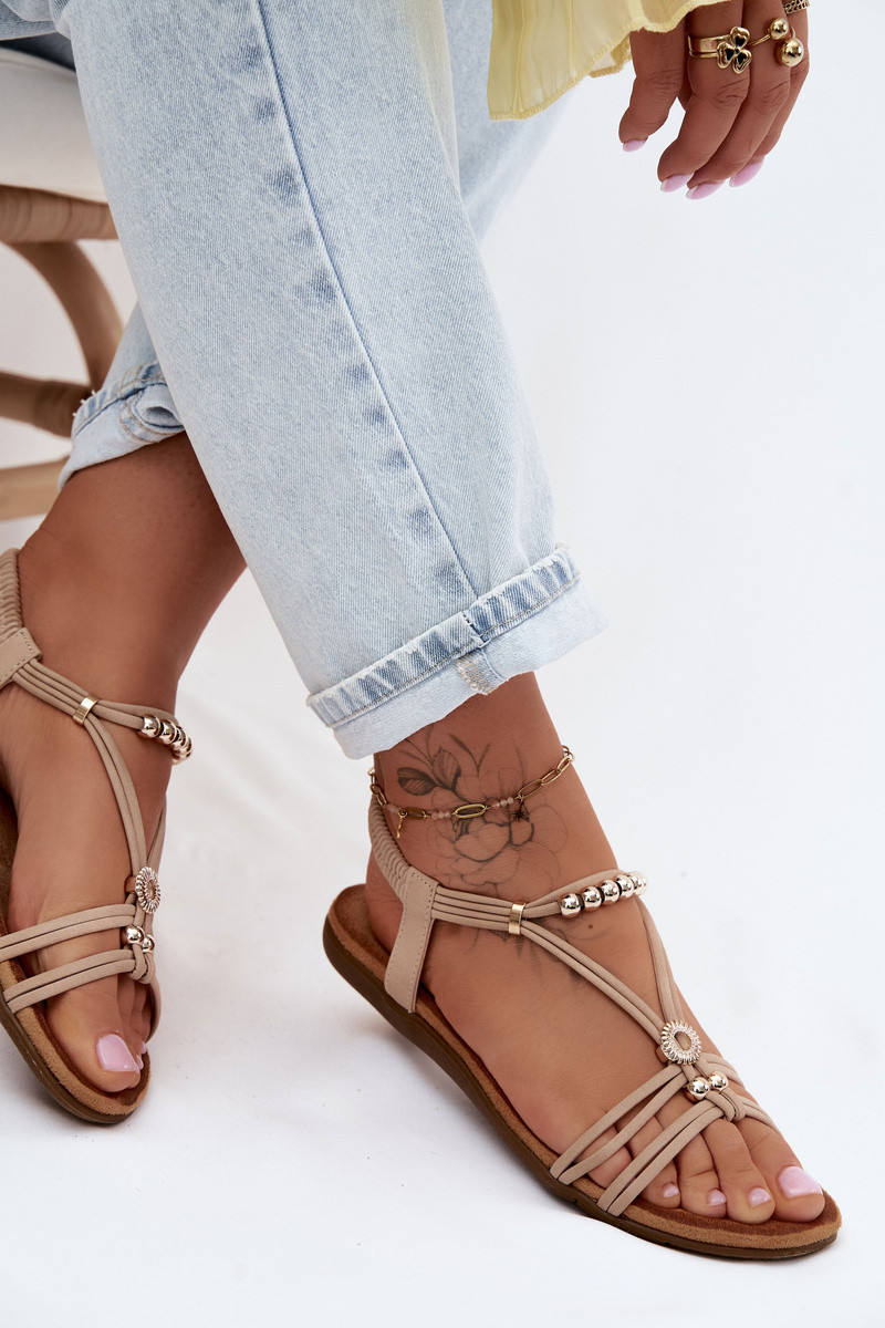 Sandales plates couleur sable pour femmes avec des brides Zelda