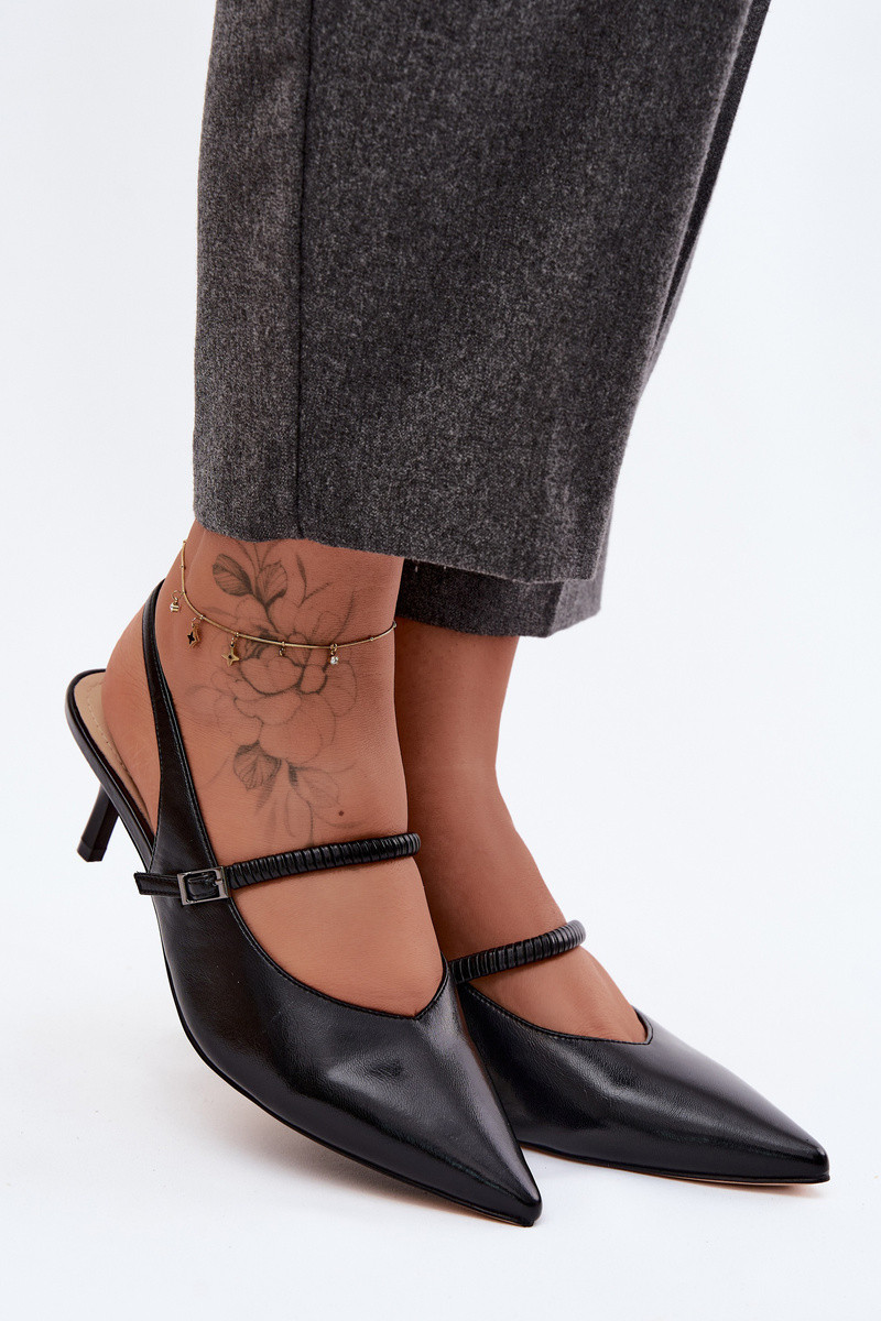 Peau Chaussures Sandales à talons hauts avec des sangles D&A CR61-3046 couleur noire