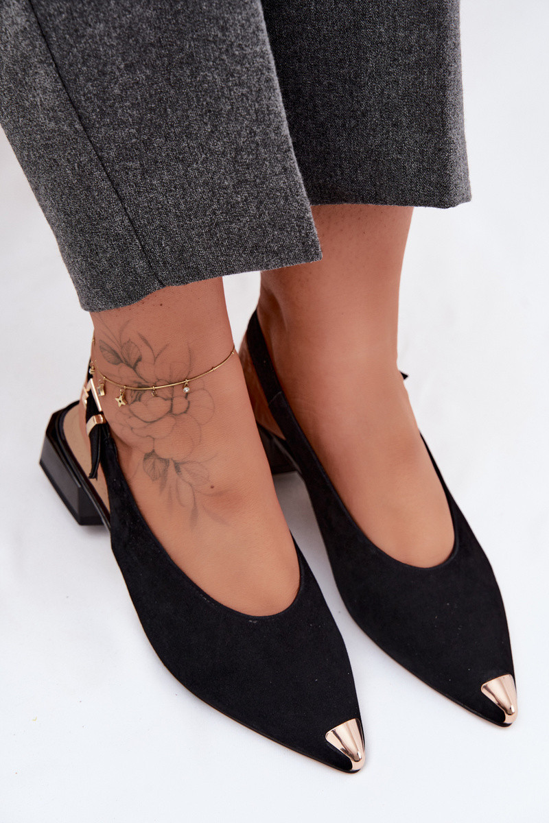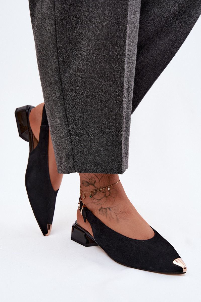Sandales en daim pour femmes à talons bas D&A CR61-3050 noir