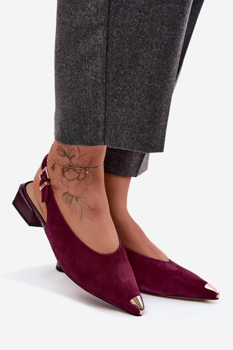 Sandales en daim pour femmes à talons bas D&A CR61-3050 bordeaux